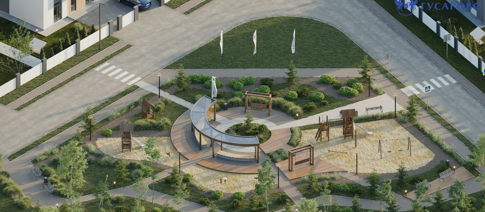 В Гусарово мы создали среду, где вам не нужно выбирать между природой и городскими удобствами. Внутри поселка: ресторан, фитнес-клуб, Padel-корт, детские площадки и парковые зоны.