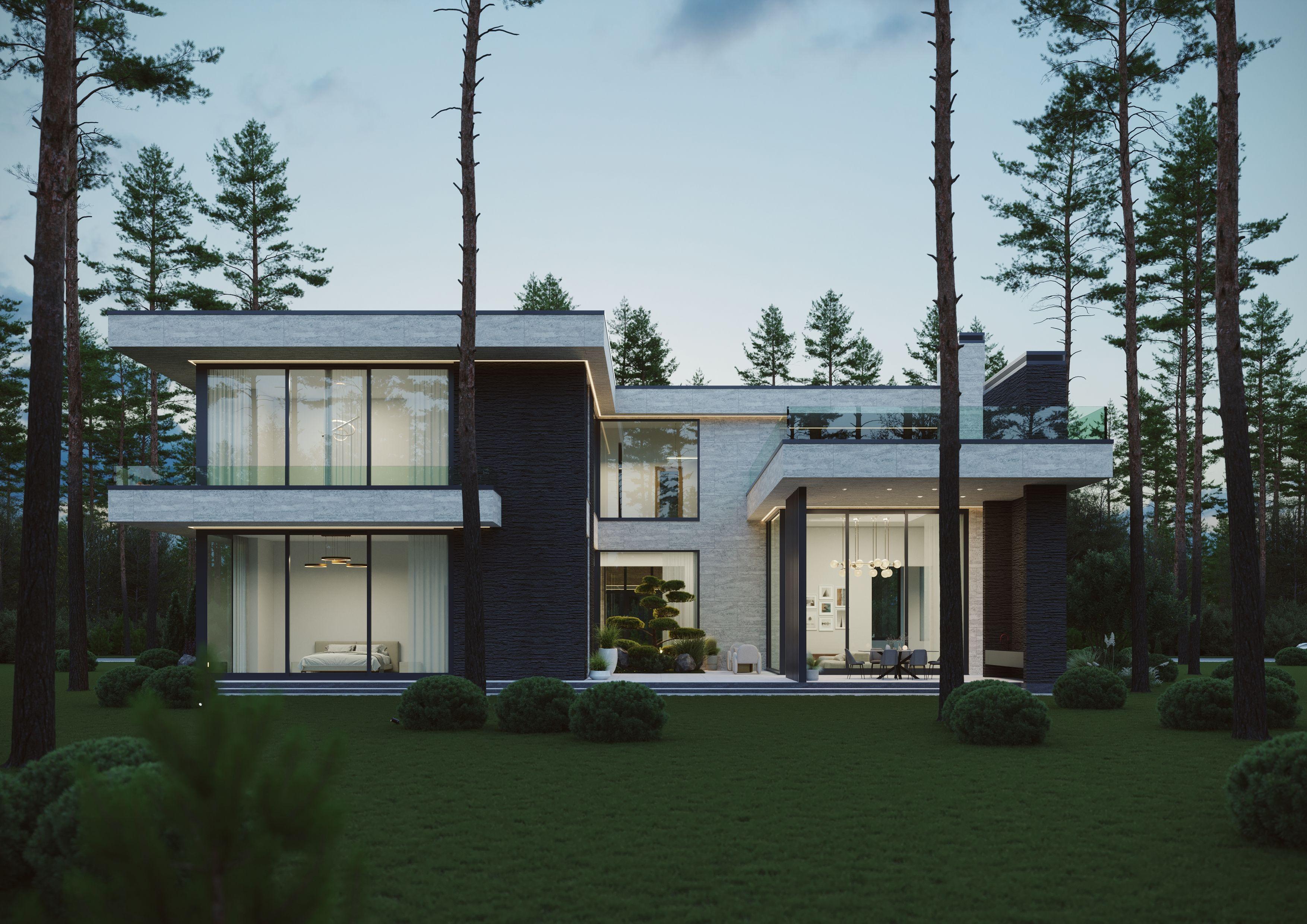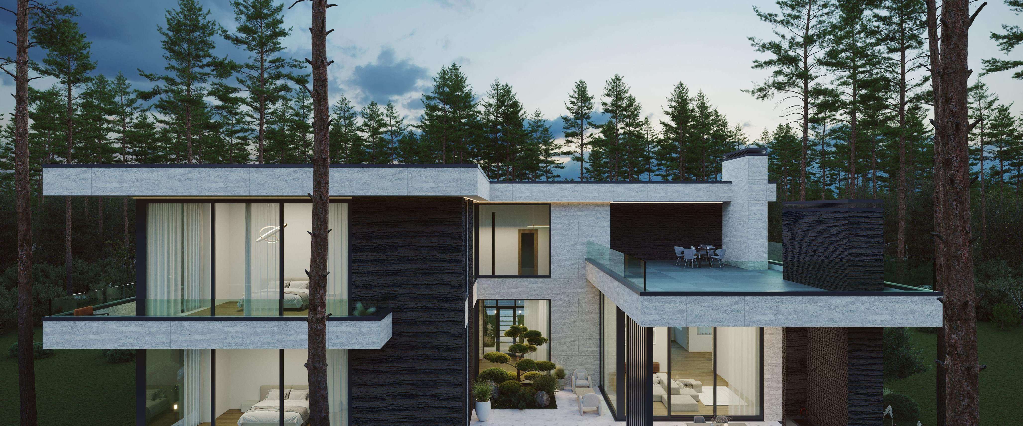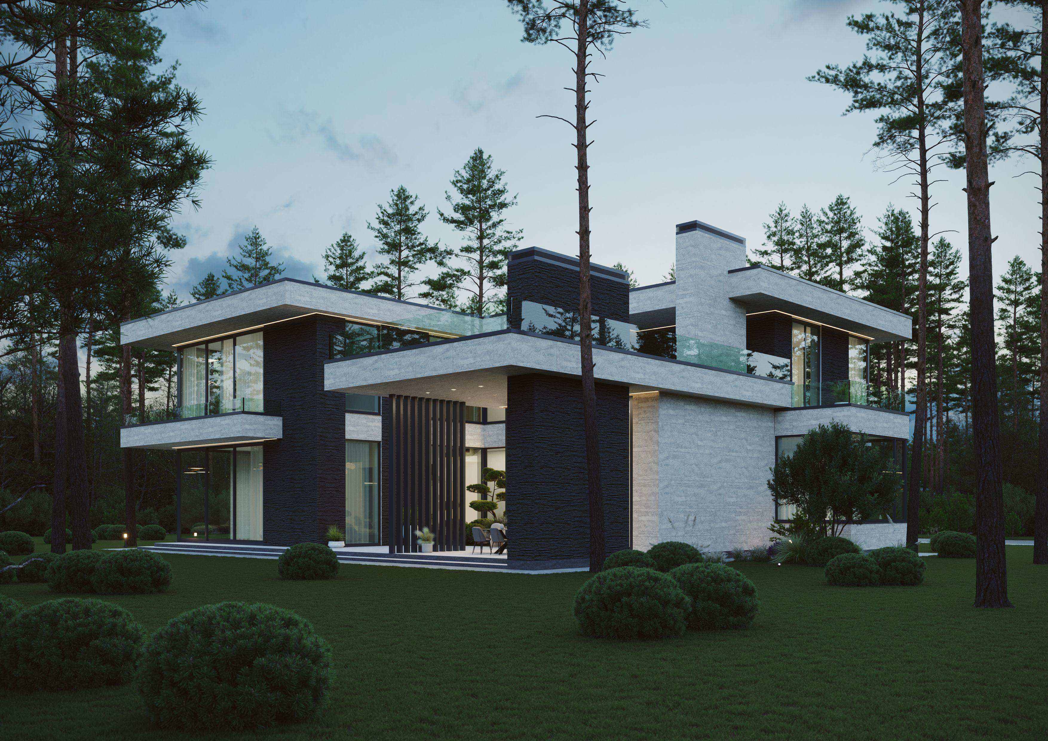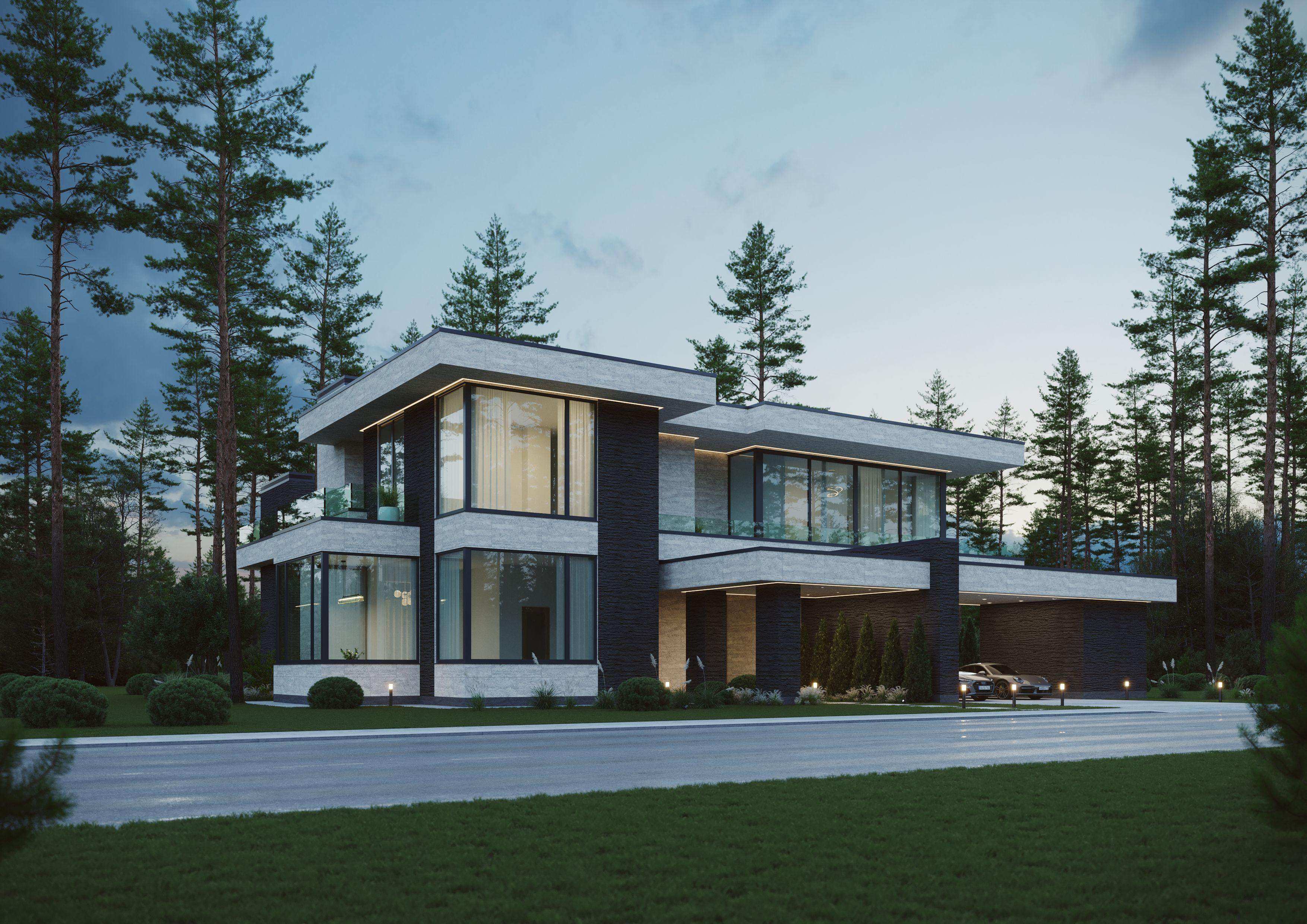 Проект «Бонсай 1» — это воплощение современного хайтек-стиля, где каждая деталь подчинена идее функциональности и эстетики. Его название как нельзя лучше отражает философию дома: идеальный баланс форм, лаконичность и красота, обрамлённая панорамным остеклением. Этот двухэтажный дом площадью 412.47 м² предлагает просторное и продуманное жизненное пространство. Четыре просторные комнаты и пять санузлов обеспечивают комфорт для большой семьи. Панорамные окна не только наполняют интерьеры естественным светом, но и стирают границу между внутренним уютом и внешним миром, создавая эффект единения с природой.
