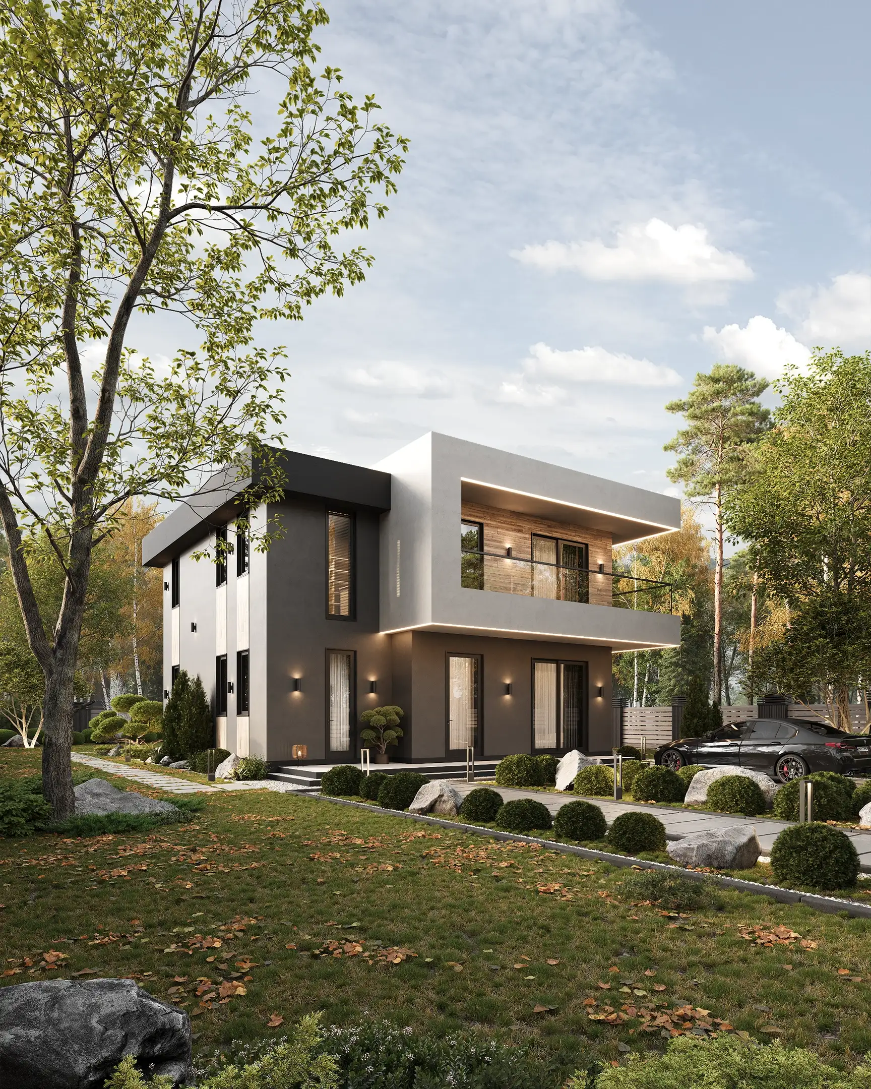 Индивидуальный проект «Денвер» — это смелое архитектурное высказывание, созданное для тех, кто ценит современность, технологичность и свободу самовыражения. В этом доме каждая линия устремлена в будущее, а лаконичные формы и чистые геометрические объемы подчеркивают его авангардный характер. Этот двухэтажный дом общей площадью 285.3 м² предлагает комфортную и продуманную организацию пространства. Просторная жилая зона 196.83 м² вмещает четыре комнаты, что идеально подходит для семьи, ценящей личное пространство каждого. Три современных санузла дополняют картину безупречного бытового комфорта.