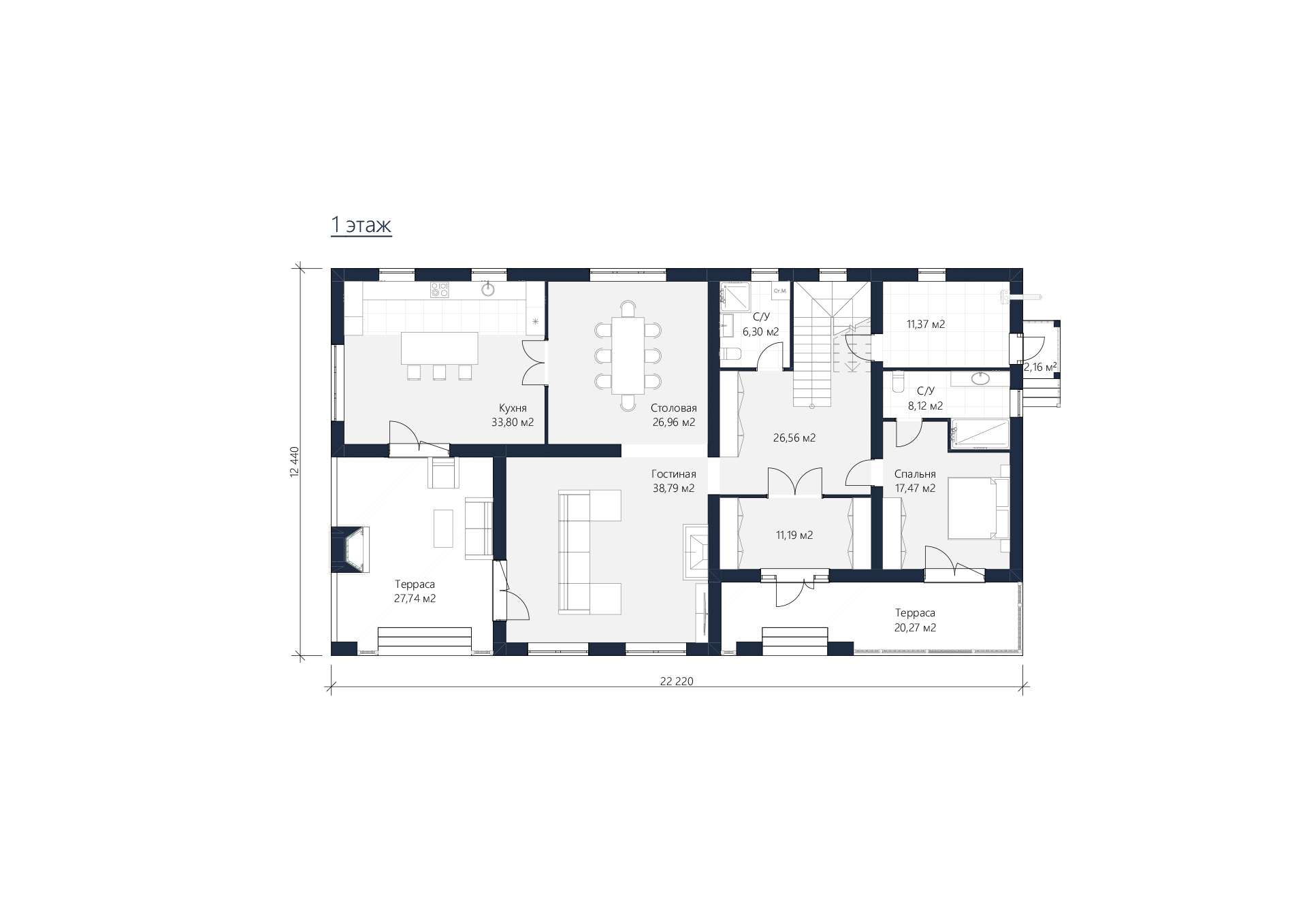 Габариты12,44 х 22,22