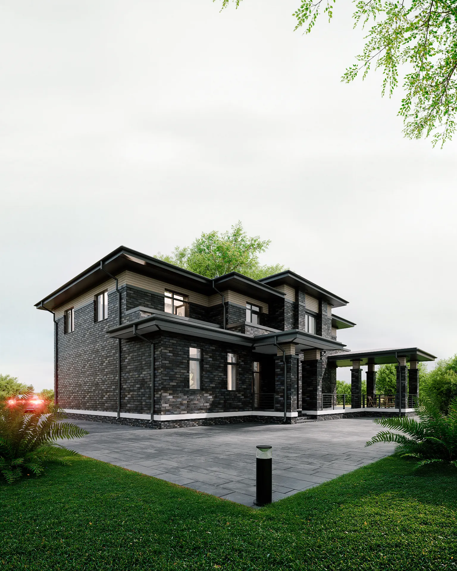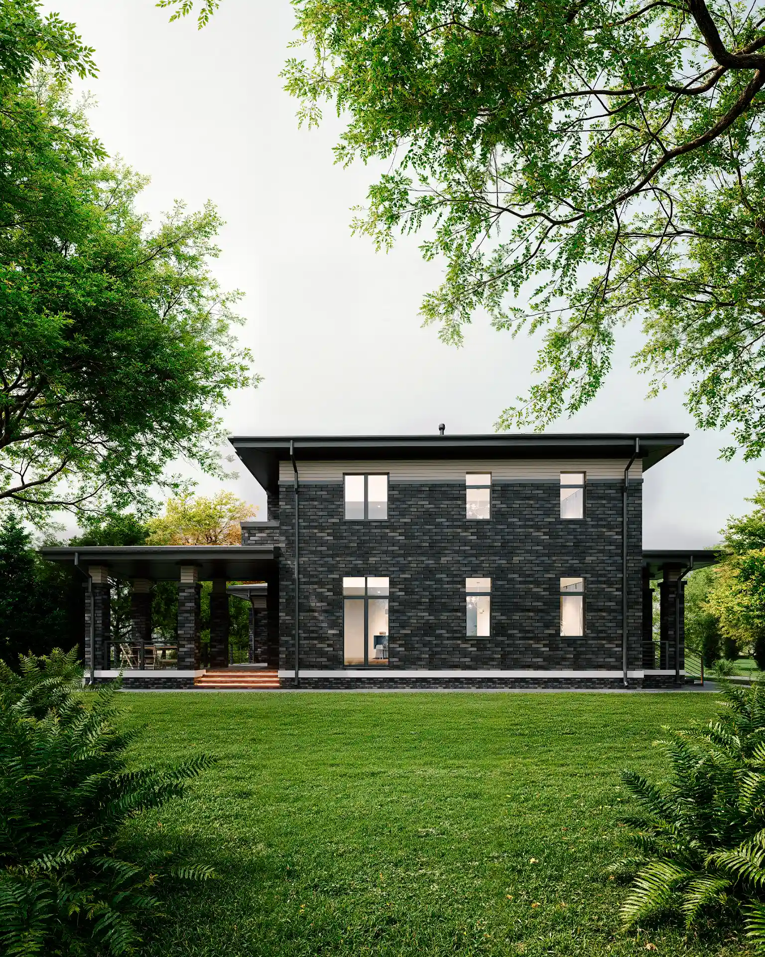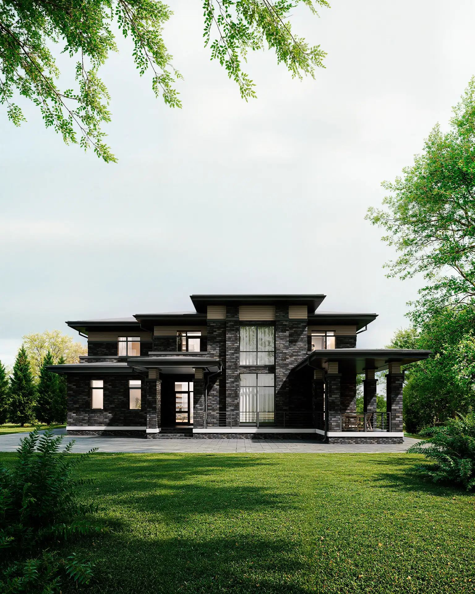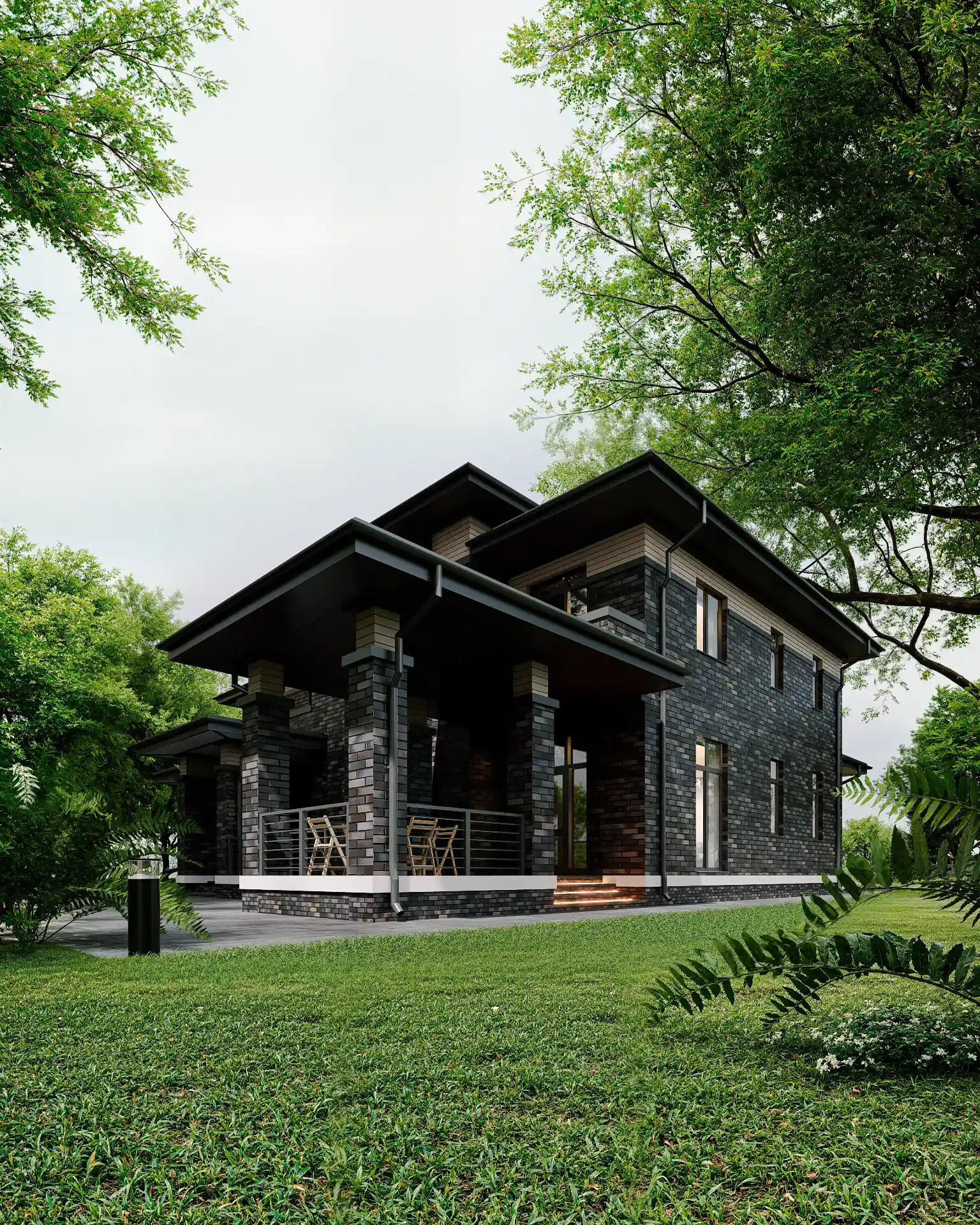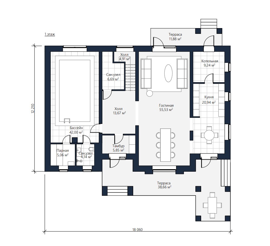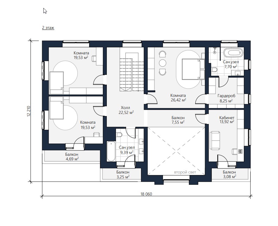Представляем проект красивейшего дома Адамас, выполненный нашими архитекторами в стиле Райта. Площадь дома составляет 302.84 м2, площадь террас и балконов 61.56 м3. Шикарный внешне дом имеет все необходимые помещения для счастливой загородной жизни. В доме гостиная, кухня, 4 спальни, банный комплекс с собственным бассейном, гардеробные, 4 санузла. Изюминка внутреннего пространства - шикарный второй свет с балконом.